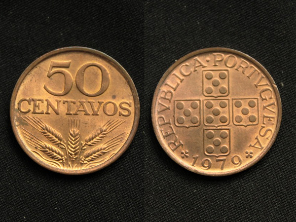 【ポルトガル】 最終年 UNC 美品♪ 50センタボス 1979 銅貨