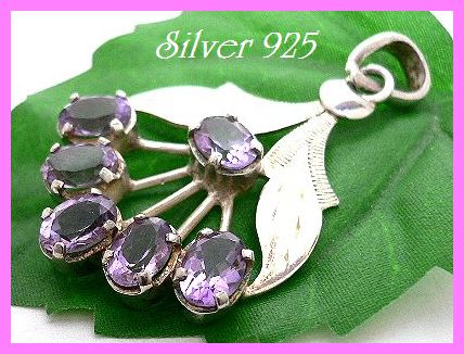 シルバー925銀の天然石アメジスト[多面カット]6石 フルーツ ペンダント/ALL50%OFF
