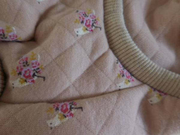 家庭用ミシンで作っているため、ニットの毛羽立ちがあります。