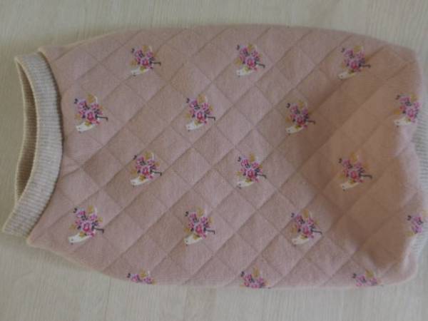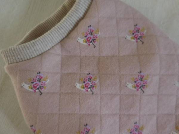 【S】小鳥ピンク秋冬キルトニット小型犬犬服ドッグウエアハンドメイド