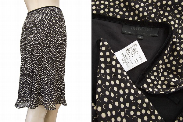 d新品同様★UNTITLED*アンタイトル★黒★お洒落ドット柄★軽やかシフォン♪タイトスカート★1号(S*36号相当)