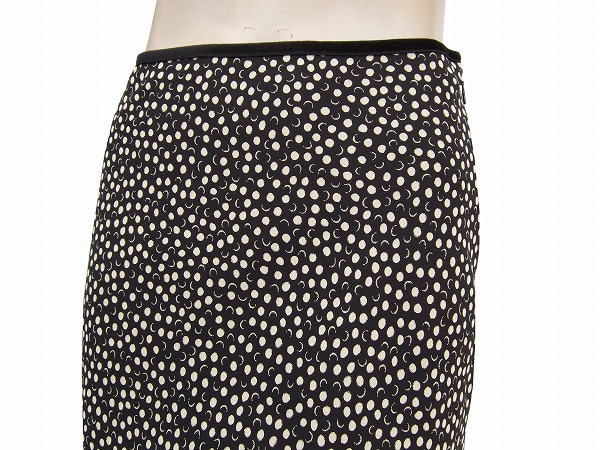 黒地にベージュ系のドット柄デザインがお洒落なスカートです。