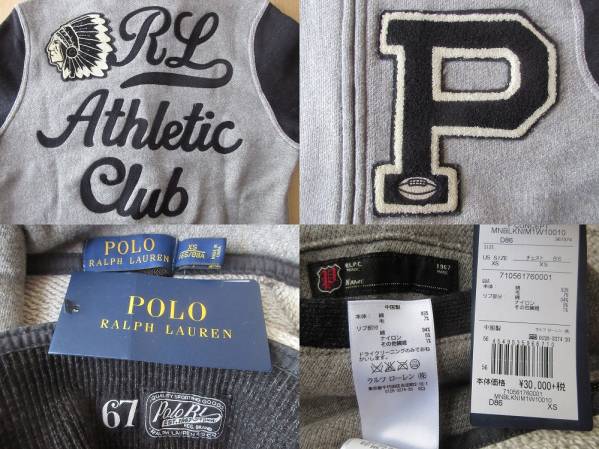 POLO RALPH LAUREN チェーンステッチバック刺繍ロゴ&レタードワッペン付き・スウェットジャケット サイズ・XS 正規品(ラルフローレン(株) 未使用品(定価・税込32,400円)