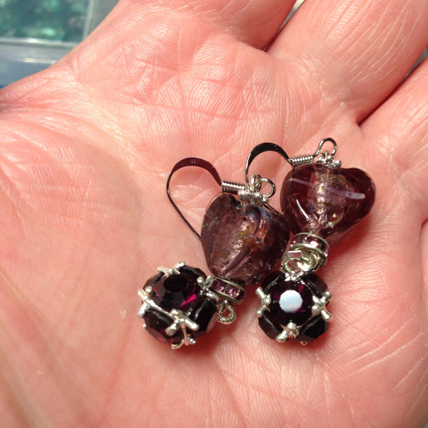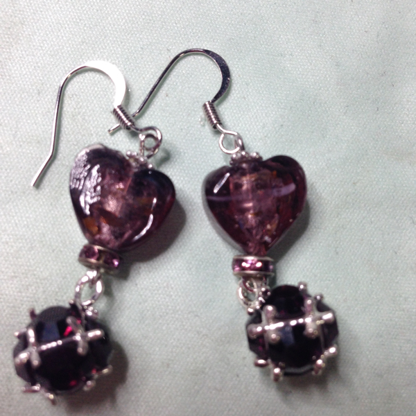 ワインカラーの立体形ハートのトンボ玉です、フックは真鍮です