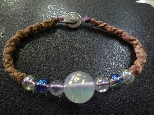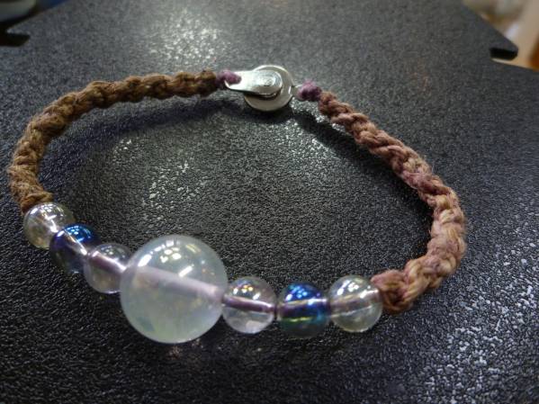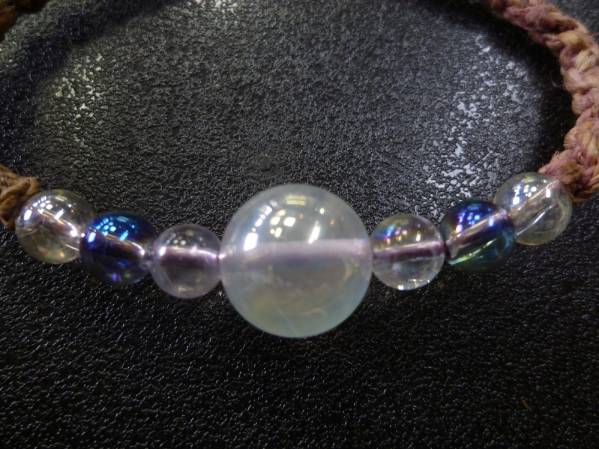 ホワイトアクアオーラ ブルーオーラ水晶 手編みブレスレット