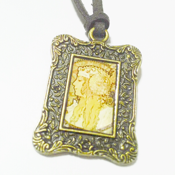アルフォンス・ミュシャ「ブロンド」の額縁調ネックレス