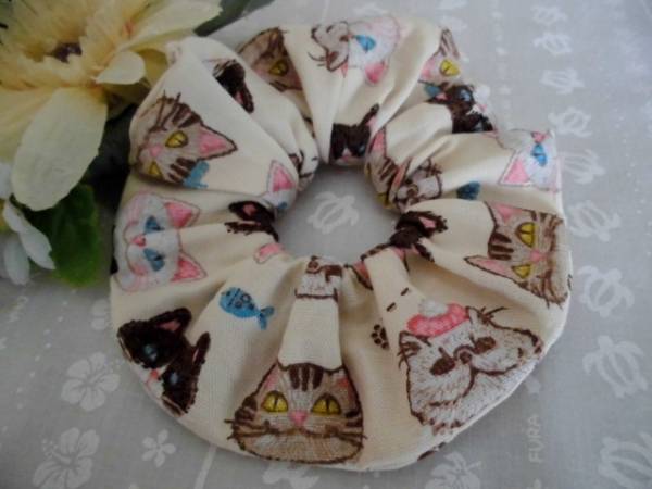 ★シュシュ★● にんまりネコちゃん (ΦωΦ) ● 白系 ● オックス ●