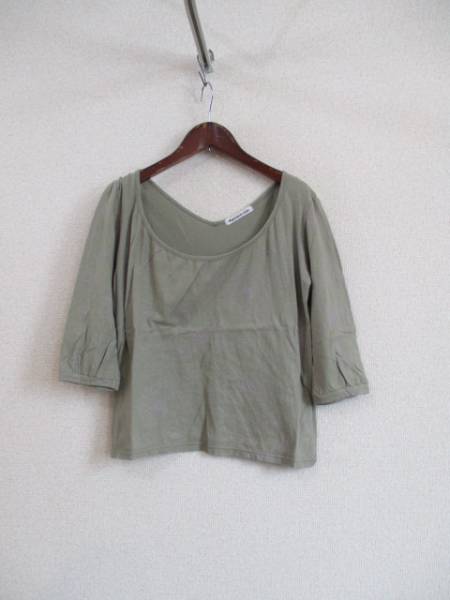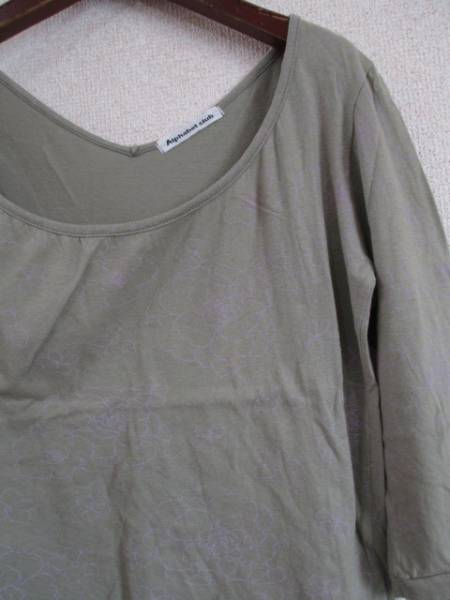 | 商品紹介 | 紫の花のプリントが入った7分袖カットソーです。 色は薄いカーキです。 《素材》 綿100% |