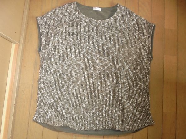 商品説明 a.v.v★茶系ふんわりニットの半袖、重ね着にも★M