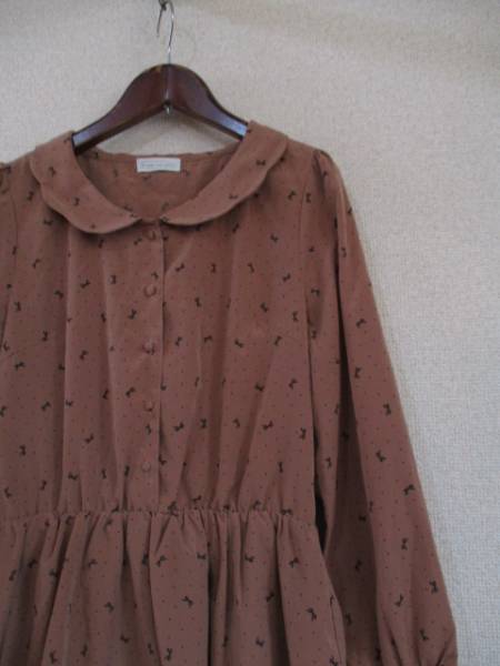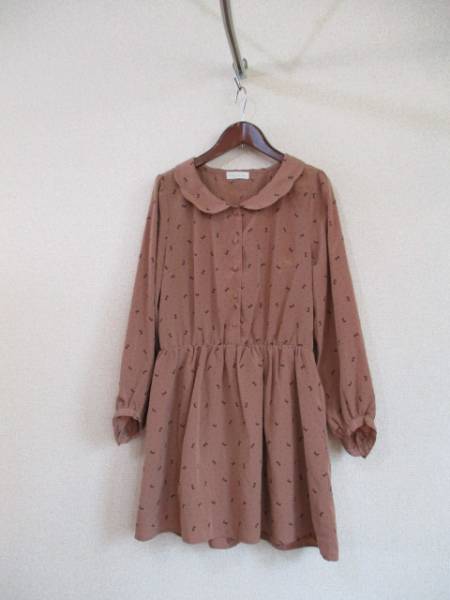 | 商品紹介 | リボンとドットのプリントがカワイイミニワンピースです。 波型の襟やギャザーが入ってふんわりとしたスカート部分など 凝ったデザインになっています。 地色は少し濃いめのピンクベージュでプリント部分は黒です。 《素材》 表地・裏地:ポリエステル100% |
