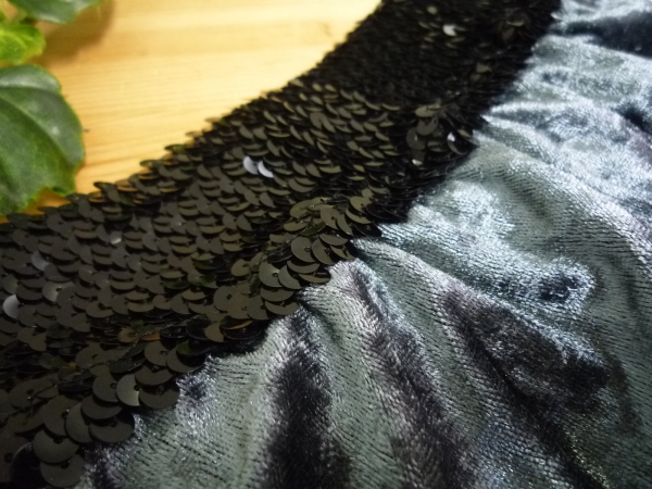 光沢のあるベロア調の生地にスパンコールがウエストラインにふんだんにあしらわれていてとってもかわいいです(*^_^*)