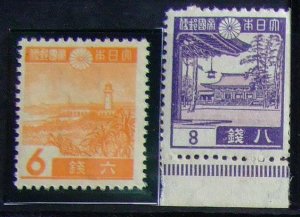 昔懐かしい切手 第1次昭和切手・オーロワンピ灯台6銭 明治神宮8銭 2枚組