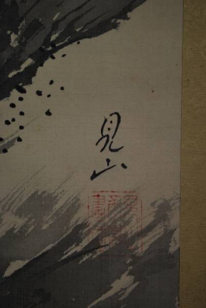 【真作】【参考】見山【作品状態】 本紙は絹本肉筆です。 本紙は薄汚れ、多少の糊シミあります。表装は多少の薄汚れ、天に一ヶ所の虫穴補修痕あります。巻裏に汚れシミあります。   紙箱付     軸丈  縦 193㎝×幅 55㎝  写真で状態をご判断の上、宜しくお願い致します。 ※質問などについては、すぐにお応えできない場合があります。 【注意事項】☆送料は元払いでお届け致します☆ 尚 一両日中に2点以上落札して頂き、       同梱発送の場合は送料は無料とさせて頂きます。 【その他の商品は ☆宝船☆】        屋号を ☆宝船☆ と致しました。       他にも色々出品しております 掛軸☆宝船☆ と検索してみて下さい。 宜しくお願い致します。 Yahoo!オークションでは、2017年10月25日から<絵画の出品に関するルール改定>が施行されました。 つきましては、当方では絵画の出品に於いて、特定の作者の作品と記載、もしくは署名落款がある場合、【真作】または【模写】と明記することとなりました。 タイトルにございます分類は下記の通りとなります。 ご確認の上、十分にご検討いただきご入札をお願い申し上げます。 タイトル頭標記の意味 【真作】本物であると断定できる作品、真作(絵画)・真筆(書)作品のこと。 ※【模写】工芸や印刷などではなく、人が書いた作品のこと。      わずかでも真作ではないと疑いのある作品は模写と表記いたします。模写として出品させて頂きます。 ※【複製】印刷・版画・拓本・リトグラフ・工芸作品のこと。 ※「真作」表記の出品で、所定鑑定機関により万が一「真作」でなかった場合には返品をお受け致します。 返品は落札後10日間です。返品の場合は落札代金のみ返金させていただきます。 ご理解のほど宜しくお願い申し上げます。