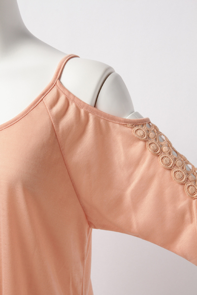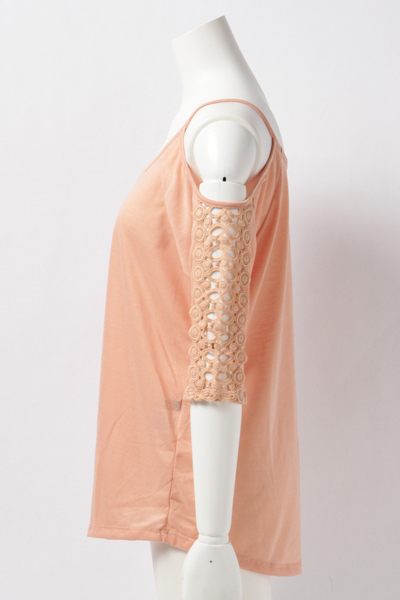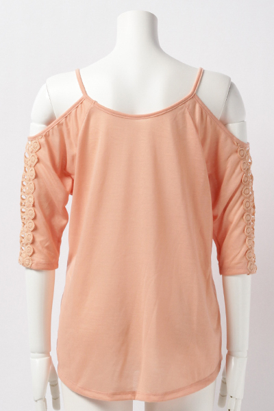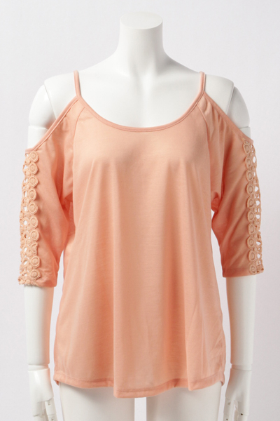 ★新品タグ付き!EGOIST肩開きレースカットソーオレンジ系F★ | ||||