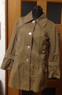 ★◎春秋物◎★USED超美品◎しっかり綿生地のフェミニン可愛い春秋コート★ ML★茶(ブラウン)色★綿100%★