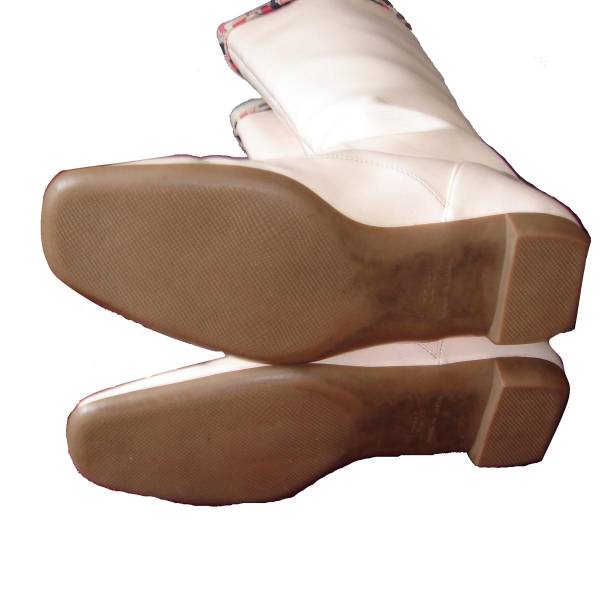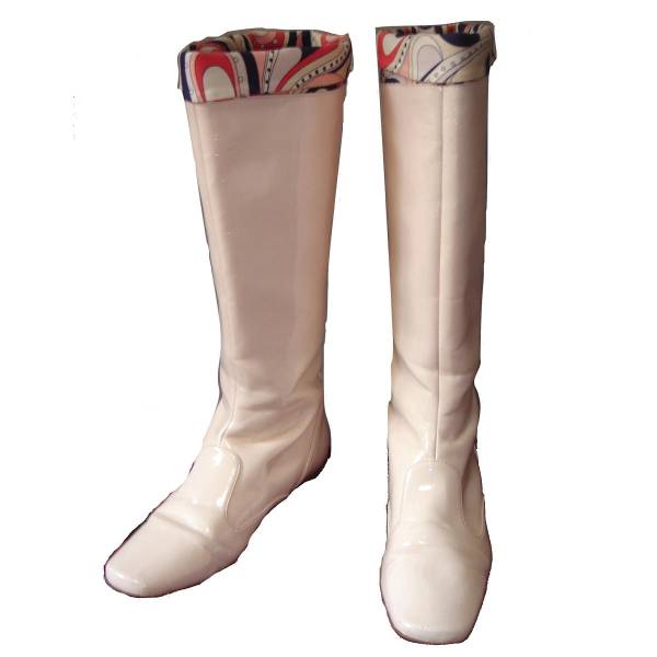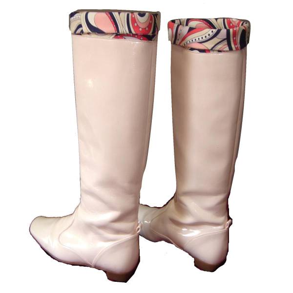 薄いピンクのエナメル皮に履き口が布地になった、可愛らしいブーツです。