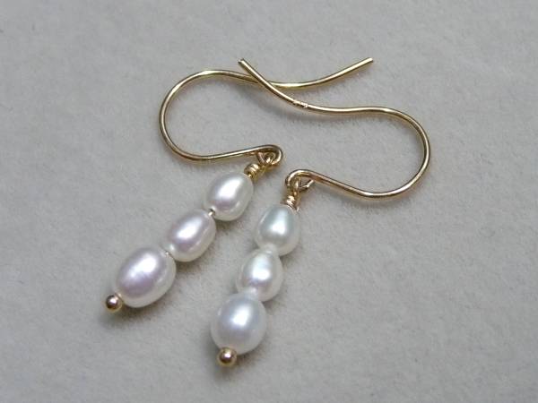 18金 3連デザイン パール K18 ピアス 未使用新品
