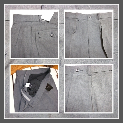ジャンク市★W-71 グレー無地 薄地 2タック ワイドモードパンツ