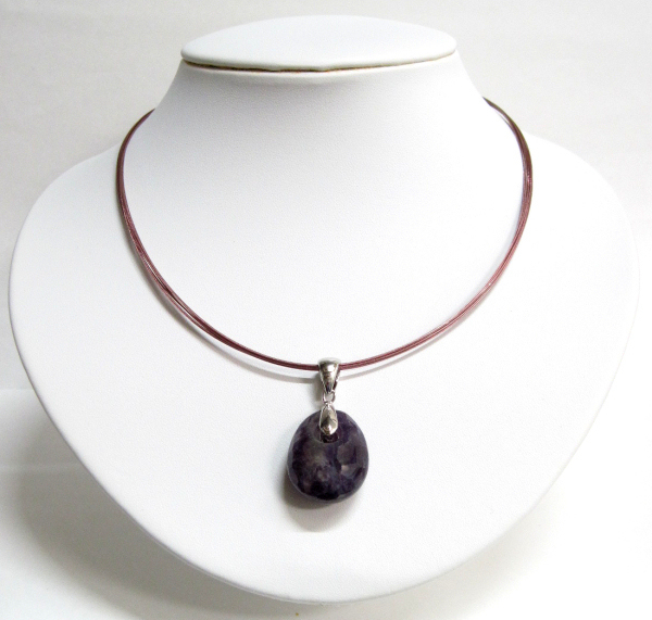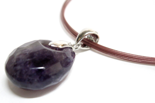 こちらはアメジストワイヤーネックレスです 古来より高貴な色として珍重されてきた紫 アメジストは紫のなかではもっとも有名な天然石の一つです 2月の誕生石でもあるアメジストは、持ち主に愛と慈しみの心を芽生えさせることによって、真実の愛を守るパワーを与えてくれるといわれています。 また、ストレスで疲れた心を癒し、落ち着かせ、穏やかな安らぎを与えてくれるといわれており、インスピレーションを強力に高めるとともに、直観力を高めるパワーがあるともいわれていますので、クリエイティブお仕事の方にはピッタリな天然石です ゴロっとした野趣あふれるデザインに大胆に通したバチカンを多目のワイヤーで合わせたデザインになっています プレゼントはもちろん、自分用にもぜひご利用ください 【商品詳細】 地金部分:シルバー925(留め金、アジャスター、バチカン) ワイヤーネックレス部分の素材は不明 石:アメジスト サイズ:ペンダントトップ 上下幅約24ミリ 左右幅約20ミリ(バチカン部分除く) ネックレス部分 最大長46センチ(アジャスターにて~5センチ調節可能) |