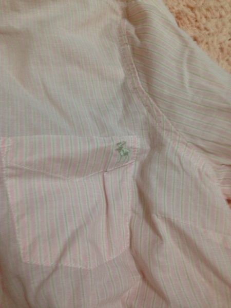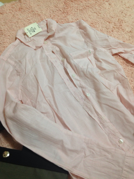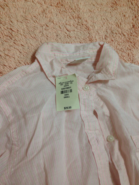 アバクロのストライプシャツです。キッズ用です。お色は淡いピンクにブラウンとホワイトのストライプ。