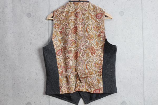 新品コムサメン最高級裏ペイズリー手織りツイードジレM紺2.8万