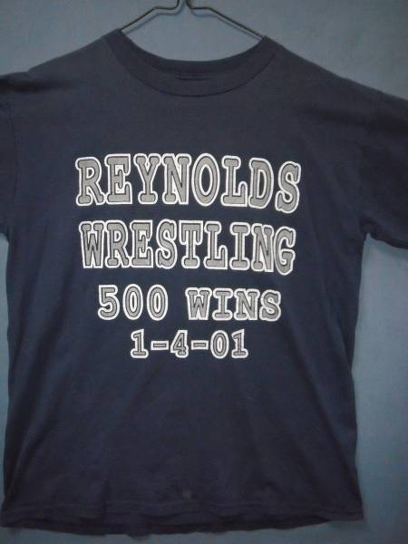 ⑧ USA古着 サイズM 前後 REYNOLDS WRESTLING 紺色半袖Tシャツ