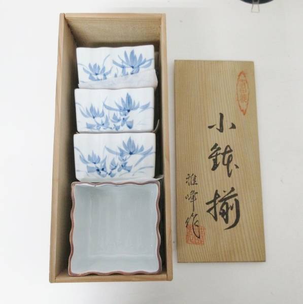 未使用品■有田焼 稚峰作 角鉢 小鉢揃 五客セット 共箱 管理1603 A-4