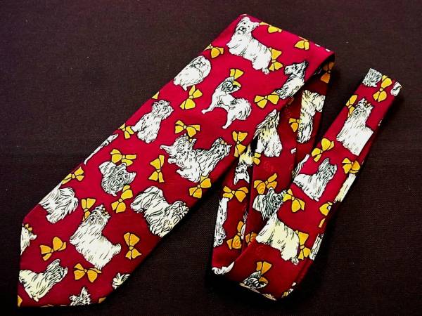 0^o^0ocl♪ra0807美品コムテッセ/パピヨン/シーズー犬ネクタイ