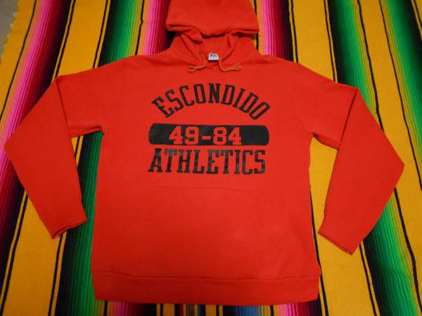ロサンゼルスで入手した  1984年製、34年前の RUSSELL ATHLETICS製 トリコロール ステインタグ付き 「ESCONDIDO ATHLETICS」オリジナル  ビンテージ スウェットパーカー MADE IN USA