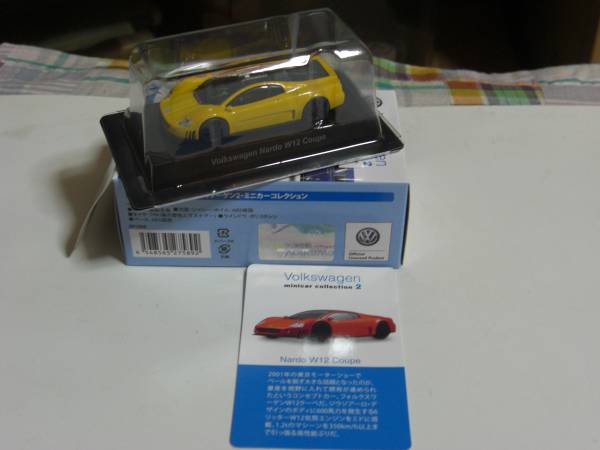 京商 1/64 フォルクスワーゲンミニカーコレクション2/6.Nardo W12 Coupe 黄、外箱開封済、、解説カードあり。落札後はノークレーム・ノーリターンでお願いします。発送は定形外もしくはゆうパックで対応させて戴きます。