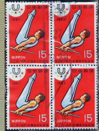 | 商品説明 | 1967年8月26日発行 「ユニバシアード東京大会記念」全二種の一 記480 (鉄棒)15円切手 4枚ブロック・田形 |