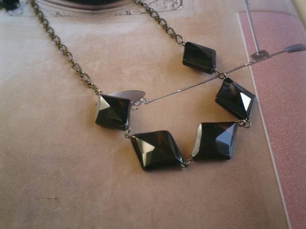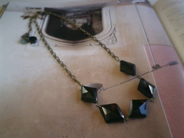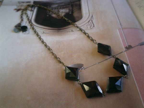 秋色を集めて・・シリーズです♪シックなオニキスのキュートなネックレスです♪25×20ミリ位の大き目のダイヤカットのオニキスとアンティークチェーンを大人っぽくまとめました♪ブラックとブラウンのお色がアートな表情のオニキスはダイヤカットが存在感があります♪アンティークモダンにロマンチックしています♪長さは全長56センチ位で調節自由です♪秋のお洋服に合わせて楽しんでいただきたいです♪シンプルで飽きのこないいつまでも着けられるデザインを考えて作りました!お揃いのブレスレットや同じテーマの作品も出品しています♪ハンドメイドをご理解頂いてノークレーム、ノーリターンでお願いします