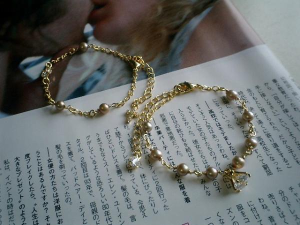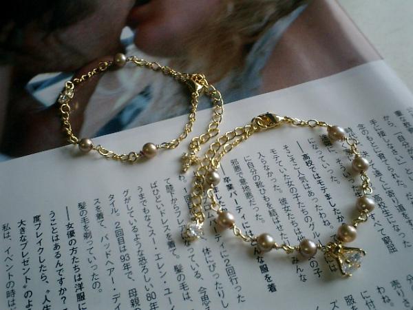 パリの屋根裏部屋シリーズです♪シックなシャンパンゴールドの淡水パールとジルコニアのブレスレット2本セットです♪シックなゴールドでちょっと華やかにまとめました♪淡水パールは5ミリ位のポテトでトップは8ミリ位のジルコニアを合わせてさりげなく豪華です♪長さは全長22センチ位で調節自由です♪小さなクロスの付いたブレスレットは5ミリ位の淡水パールと6ミリのラウンドのジルコニアを合わせました♪シンプルでキュートです♪長さは全長21センチ位です♪大人のロマンチックしています♪2本ともパリの屋根裏部屋をイメージして作りました♪シンプルで飽きのこないいつまでも着けられるデザインを考えて作りました!こちらはネックレスも出品しています♪ハンドメイドをご理解頂いてノークレーム、ノーリターンでお願いします