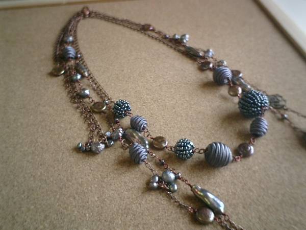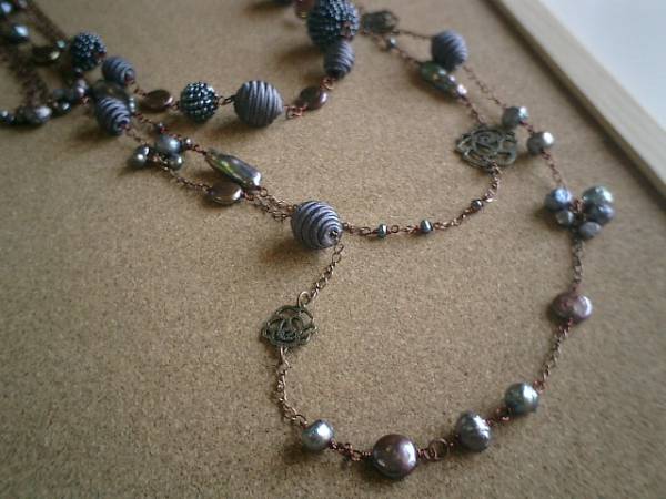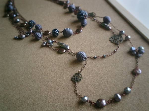 私の小さな引き出しに・シリーズです♪グレーの淡水パールを集めて・・シックなグレー色の淡水パールのネックレス3本セットです♪色々な組み合わせで楽しんでいただけます♪5ミリから21ミリ位までのおポテトやコイン、バロック、ステックなどのデザイン違い、大きさ違いの淡水パールをシックにまとめました♪12ミリ、18ミリ位のグレーのビーズ玉や10ミリのコインの淡水パールや12ミリから14ミリ位のクロッシュボールのネックレスは全長59センチ位で調節自由です♪長さは全長65センチ位で調節自由です♪チョーカー風に着けても素敵です♪5ミリ×22ミリ位のステック型の淡水パールは2ミリの極小パールや薔薇の透かしチャームを合わせてひっそりロマンチックしています♪長さは全長90センチ位で調節自由です♪7ミリ位の表情豊かなつぶパールは10ミリのコイン型のパールや5ミリ位のバロックパールや12ミリ、14ミリのクロッシュボールや透かし薔薇のチャームを合わせてシックな表情です♪長さは全長103センチ位で調節自由です♪2連にされても素敵です♪それぞれ単品やお揃いのブレスレットも出品しています♪♪秋のお洋服に合わせて楽しんでいただきたいです♪シンプルで飽きのこないいつまでも着けられるデザインを考えて作りました!ハンドメイドをご理解頂いてノークレーム、ノーリターンでお願いします