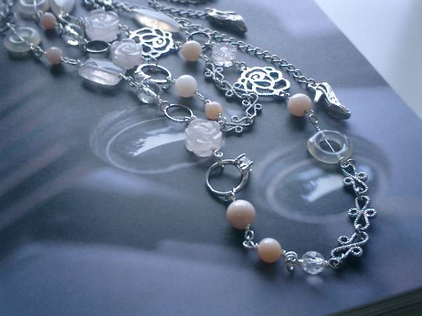 終わりのない夢・・シリーズです♪繊細なピンクを集めて・・夏の始まりをイメージしたネックレス2点セットです♪♪同じデザインの長さ違いです♪重ねてネックレスで着けたり1本をブレスレットにしたりいろいろに楽しんでいただけます♪淡いニュアンスのあるピンクを集めたネックレスです♪ローズクォーツは10ミリ、12ミリ、14ミリ位の大きさ違いの両面薔薇と15×10ミリ位のカットスクエア、ピンクオパールは6ミリ、8ミリの丸玉です♪ホワイトカルセドニーは26×10ミリ位のマーキスと15ミリ位のリングです♪水晶は6ミリと8ミリのランダムカットです♪薔薇のチャームやジルコニアリングやデザインチェーンを合わせて可憐な表情です♪長い方は全長83センチ位で調節自由です♪2連にされても素敵です♪♪短い方は全長60センチ位で調節自由です♪♪チョーカー風に着けたりブレスにされても素敵です♪それぞれ単品でも出品しています♪ハンドメイドをご理解頂いてノークレーム、ノーリターンでお願いします