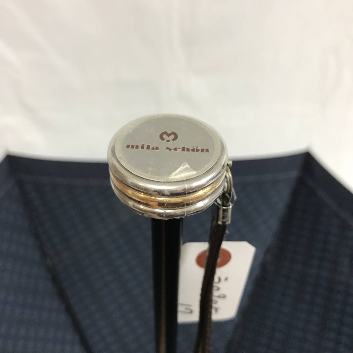 ▽品名:折りたたみ傘 ▽ブランド:mila schon ミラショーン ▽種類:雨傘 ▽商品状態:中古 【傷、汚れ、使用感はあるものと考えてください。】 《外生地》 少々汚れがあります。目立つ程ではないかと思います。 《内生地》 たたみ汚れがあります。 《手持ち部分》 保護フィルムがついていますが、キズあり。 《その他》 中棒にぐらつきがあります。 ★★見落としがある場合もあります。神経質な方は入札をご遠慮下さい。★★ ▽サイズ:全長22.5cm、開傘時直径98cm ▽重量:212g ▽カラー:紺 ▽柄:総柄 ▽開閉:手開き式 ▽カバー:無し 購入時期、使用期間は不明です。 中古商品となります。完璧をお求めの方は購入をお控え下さい。 | |