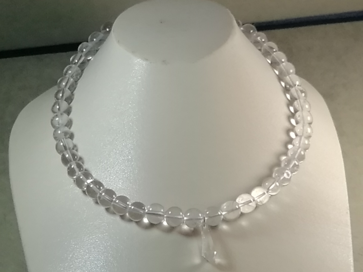天然丸玉水晶ネックレス&水晶ペンダントデザインネックレス