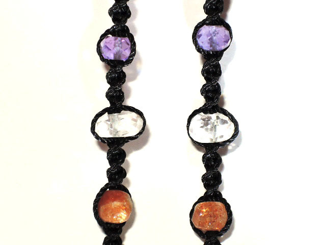 編み込みの天然石ビーズは下から左右対称に