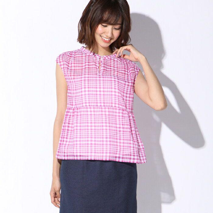 ノースリーブのブラウスはすっきりとしながらも可愛い印象に。