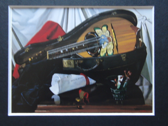 城戸義郎【マンドリンのある静物】希少画集画、状態良好、新品高級額装付、送料無料、洋画 油彩 風景