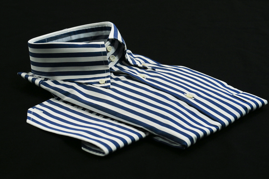 ★イタリアシャツ DANROMA ドゥエボットーニ 完璧ブルーネイビーロンドンストライプ BACCHETTE LARAGA RIGA NAVY FACEBOOK_54 L 42-93