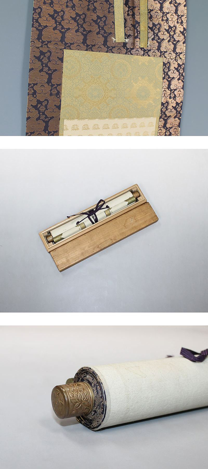 在印【釈迦如来】 本紙は、シミ、汚れがあります。 表装は、シミ、汚れ、ヤケがあります。 【サイズ】 作品 横約16cm×縦約59cm 表装 横約27cm×縦約130cm |
