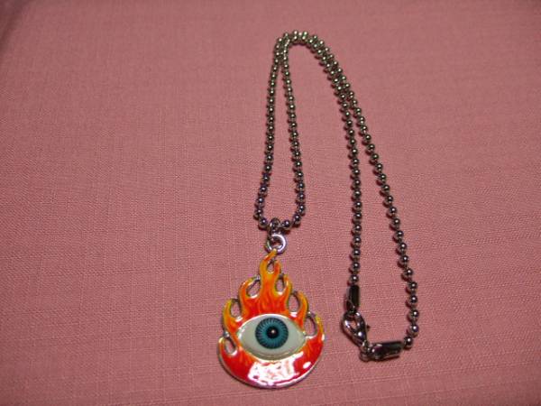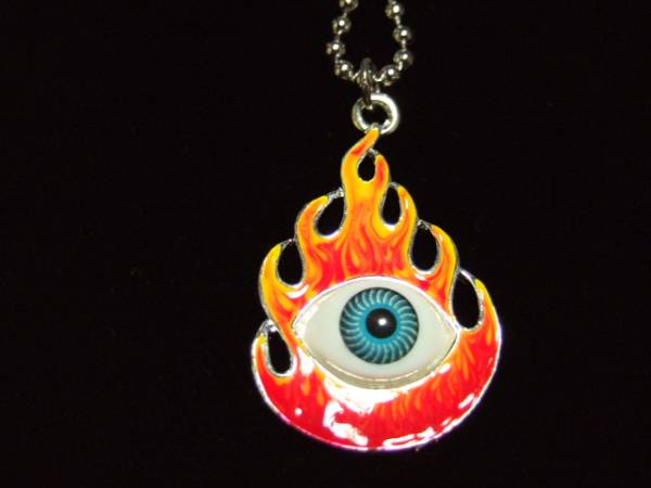 あざやかな炎にブルーアイ、元気が出てきます。チェーンも迫力の3.2ミリ両端ロー付け加工。 大変綺麗な作りで、楽しくわくわく柄の魅力的なデザインは、きっと気に入っていただけると自信を持っております。 |
