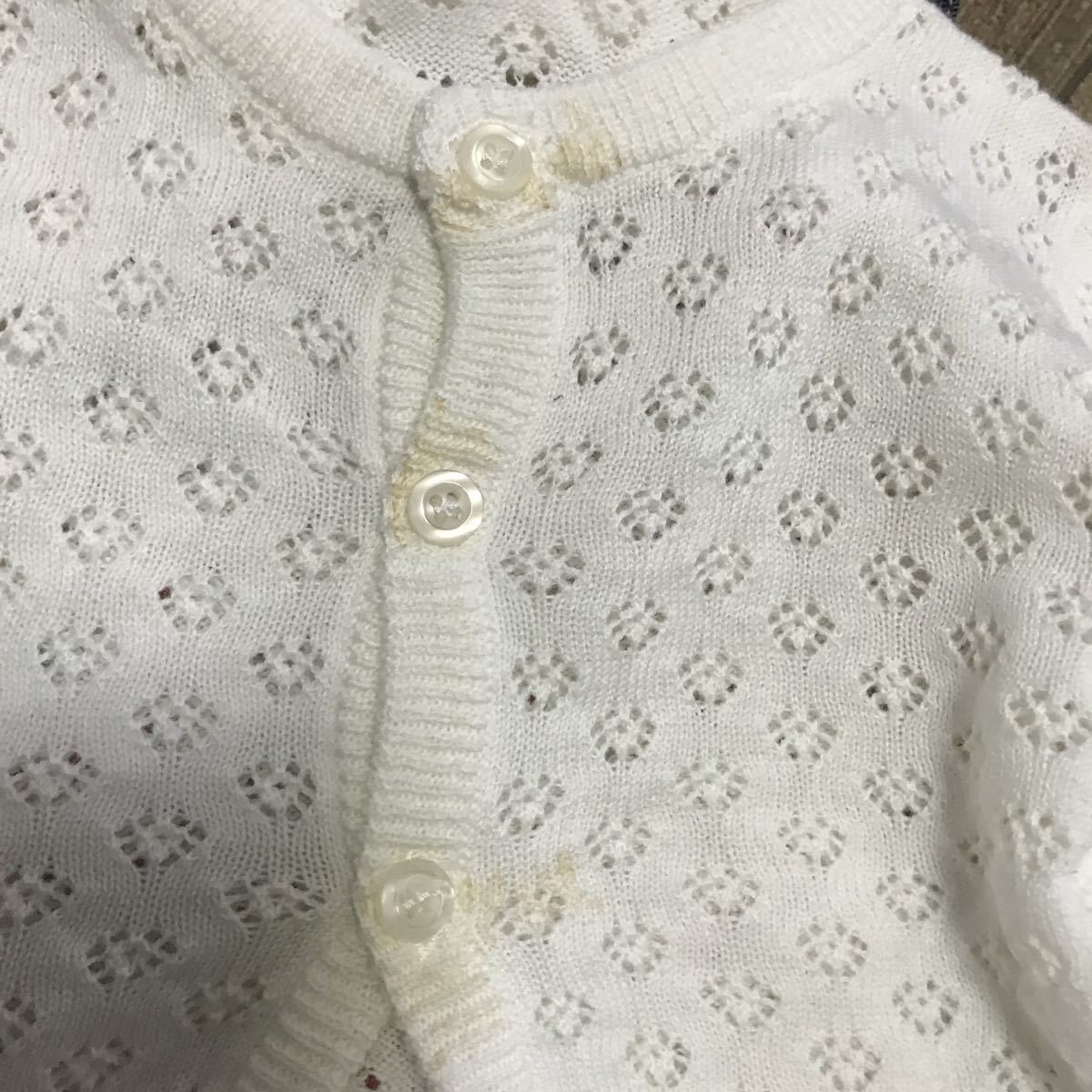 カーディガンに汚れがあります。画像ご確認の上、入札ください。