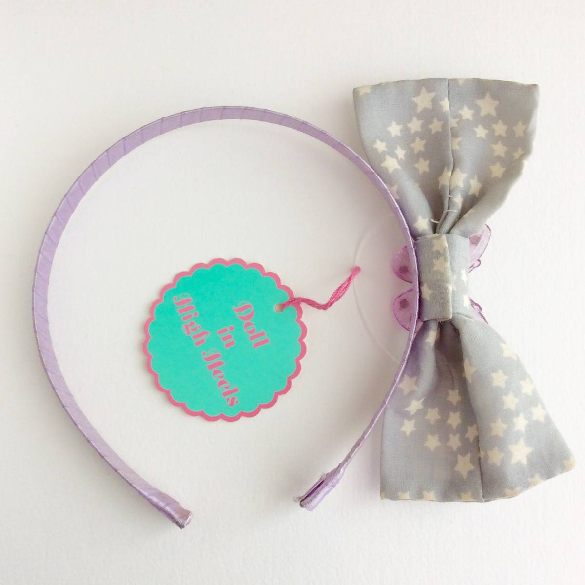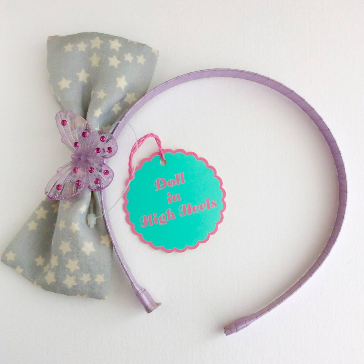 未使用★fafa リボン×バタフライ カチューシャ グレー×パープル スター ヘアアクセサリー ファンシー ゆめかわいい キッズ 子供 フェフェ