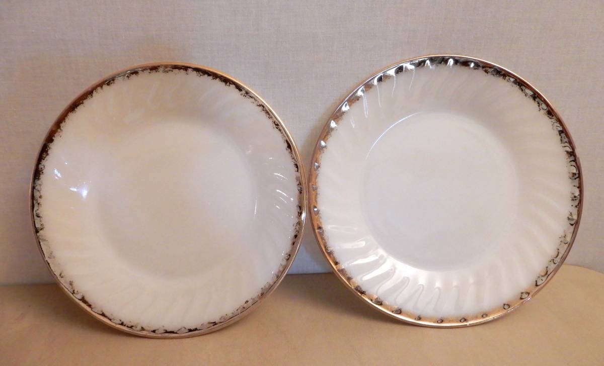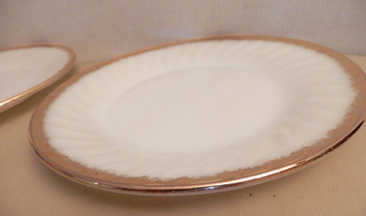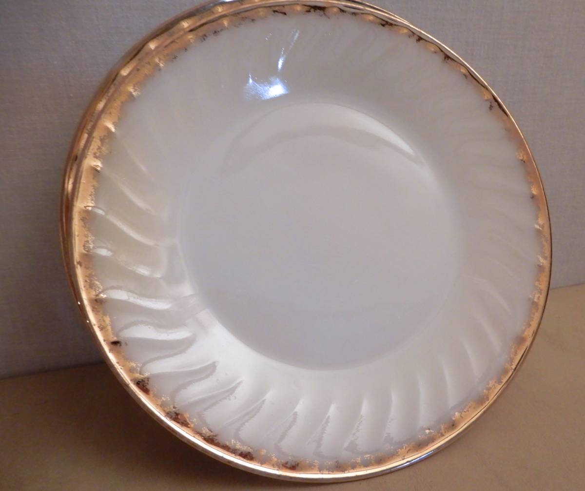 【USA製/発送★Fire King★ファイアーキング】2枚皿ディナープレート★アイボリー/白ミルクグラス★金縁スワール★A★ヴィンテージ