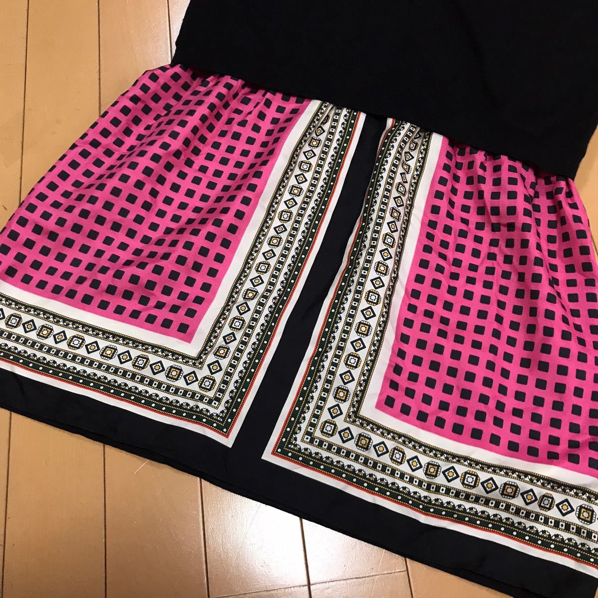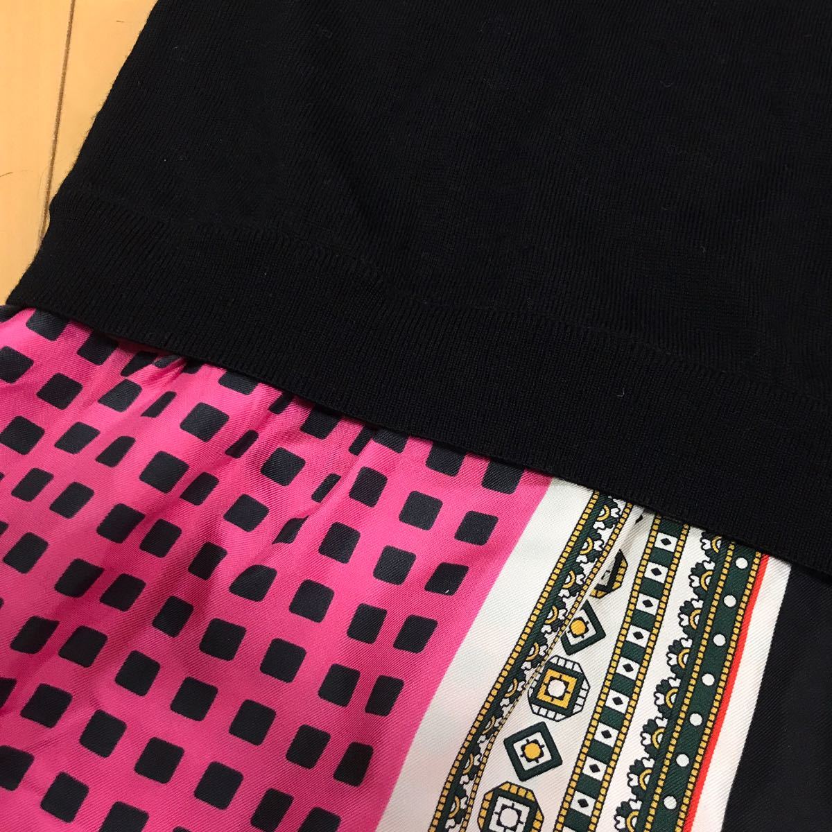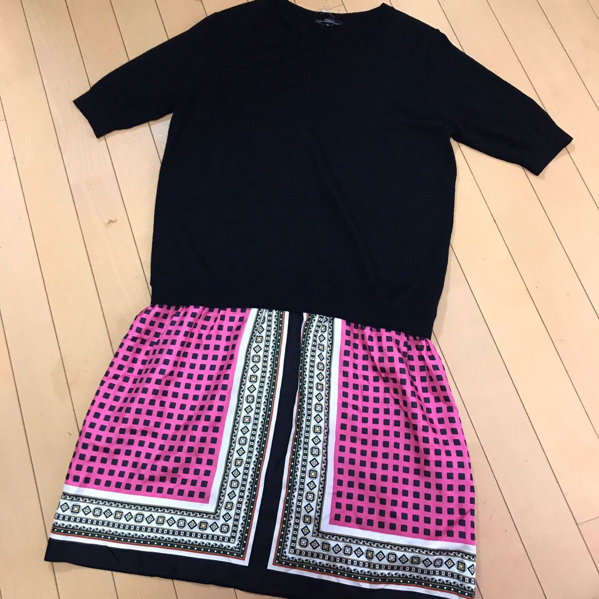 ◆薄手ニットにシルクの綺麗なスカートが付いた半袖ワンピース