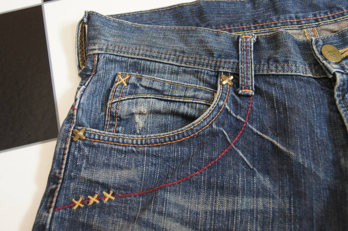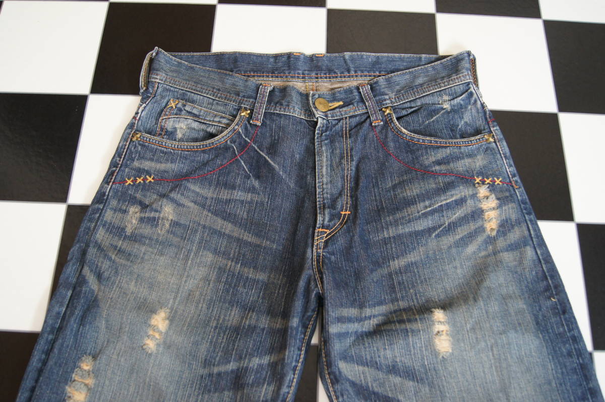 <商品状態のランク> B~Cランク <表示サイズ> W30 <素材> 綿100% <商品説明・コメント> 色はインディゴブルー系 ハーフデニム ユーズド加工 ダメージ加工 ツイスト加工 フラップ付バックポケット 裾部分チェーンステッチ ノークレーム、ノーリターンでお願いします 詳細サイズ(平置きで計測)をよく確認して入札してください |