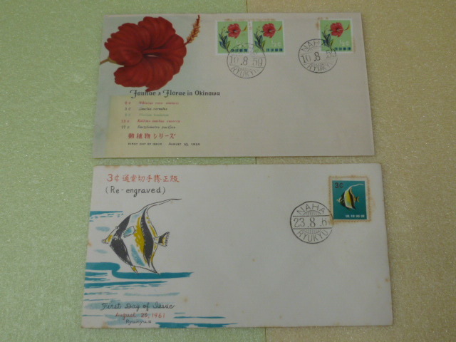 19 №19 琉40 琉球切手 初日特印付き カバー FDC 1959-61年 動植物シリーズ・他 計2通