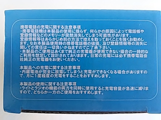 FMラジオとLEDライトとSoftBankの携帯に充電できることを動作確認致しました。